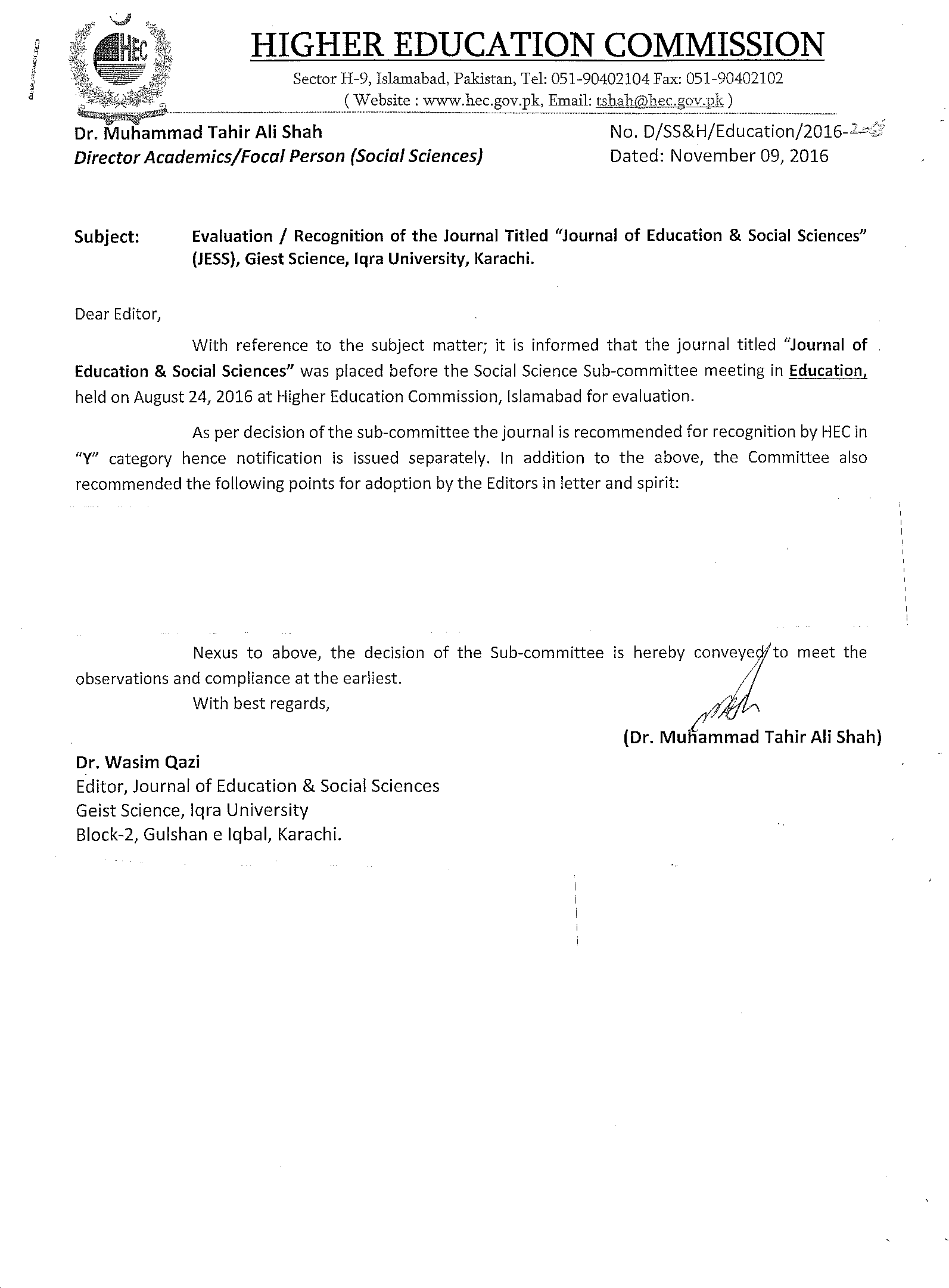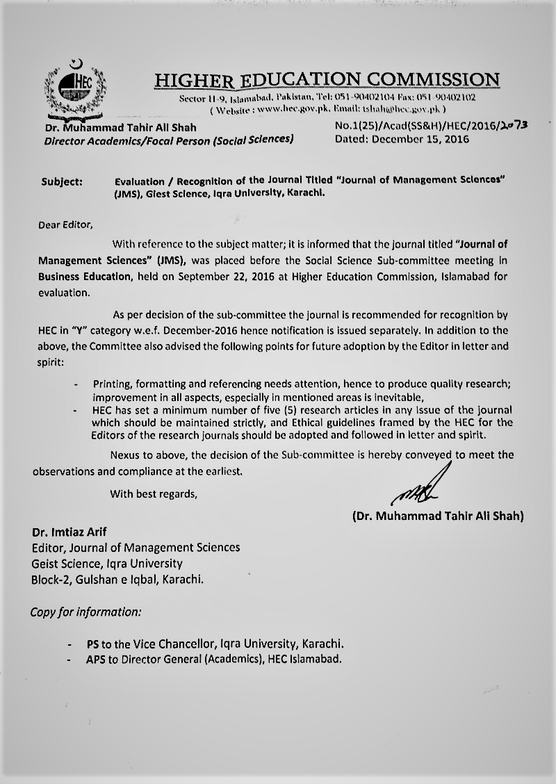 Journal of Education & Social Sciences (JESS) is a HEC funded and recognized journal owned by Geist Science. The editorial team of JESS is deeply grateful to HEC for its generous funding and intellectual guidance in running the journal successfully.